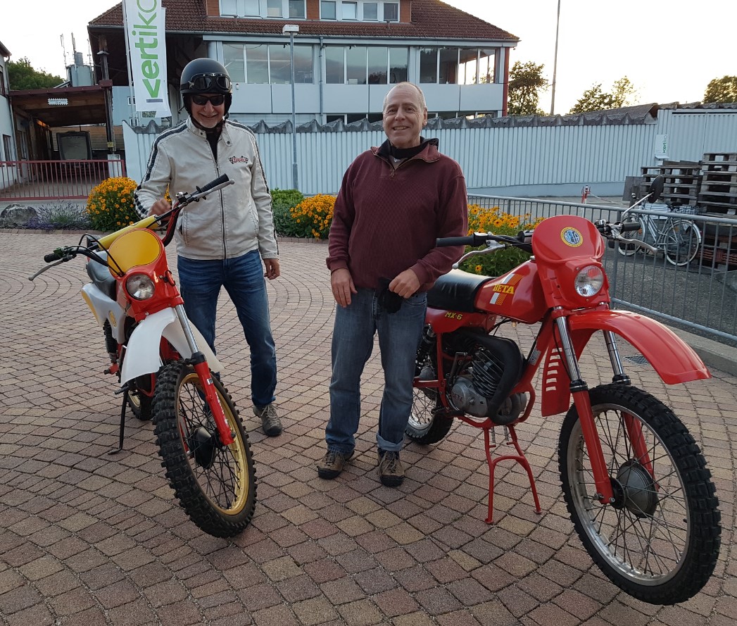 Ich fands nur bedingt lustig. Ich hatte die einzige Beta, im Gegensatz zu 5 bis 6 Aspes. Meine war nagelneu und noch alles original. Die Aspes Meute dagegen waren alles 79er Blechtank mit 19er Vergaser. Die Mitschüler feixten schon, endlich gibt denen mal einer richtig Gummi. Aber ich fühlte mich wie ein Schaf, dass der Wolfsmeute tunlichst aus dem Weg geht. :cry: