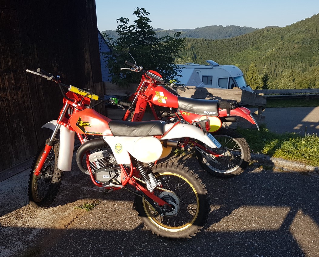 Dazu eine Fantic und eine 50er SMW Trial und etliche Vespa-Roller.