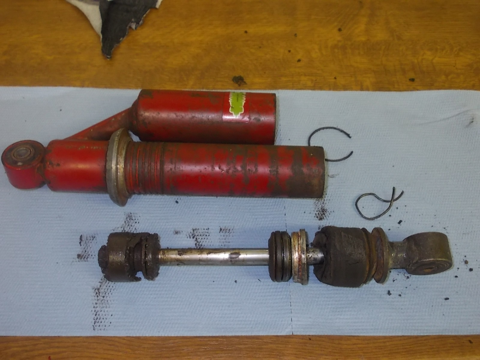 Geht mit so einem Werkzeug super, man klemmt die Kolbenstange bombenfest. So bekommt man nicht nur die Schraube der Innereien ab, sondern auch auch das Federbeinauge.