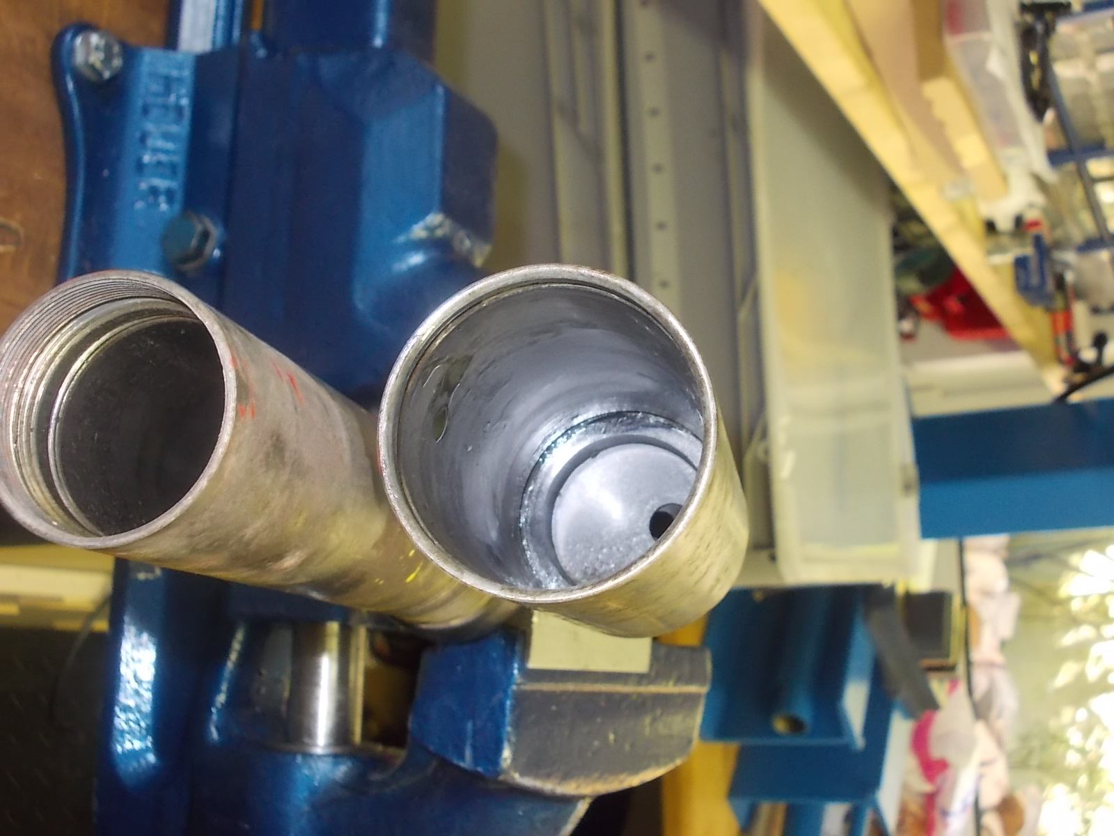 Zum Schluss mit nen Reibahle auf 10,50 mm gerieben und eine Seite um ca. 0,5 mm plan überfräst. Hab leider keine 11,50 mm Reibahle (schon bestellt) um auch diese Kolbenstangengröße klemmen zu können.