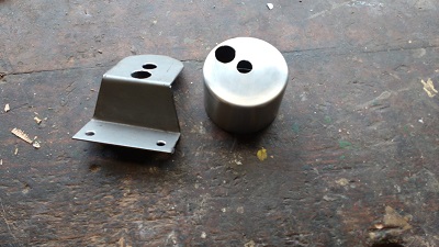 Dann auf 1,5mm Stahlblech übertragen, Bohrungen angebracht, mit dem Winkelschleifer ausgeschnitten und im Schraubstock gekantet. Ging so, 100 prozentig gerade wurde es nicht, geht aber.