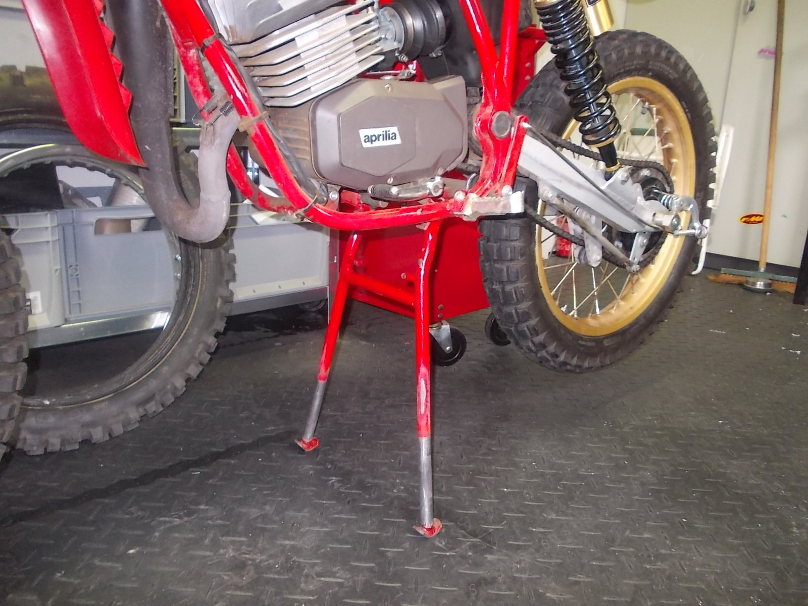 Passt jetzt sehr gut und man kann die Maschine schön entweder auf das Vorder- oder Hinterrad kippen. Bleibt beide mal von alleine stehen. So gefällt mir das