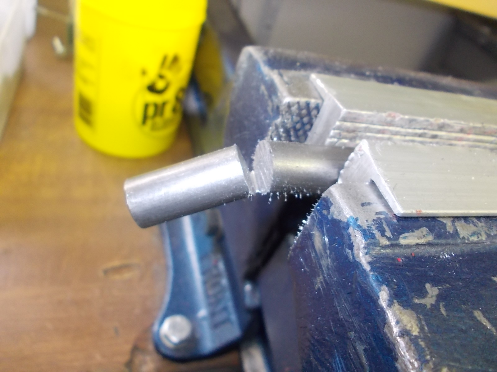 Beim Ausrichten im Schraubstock festgestellt, warum passt ein 6,5mm Bohrer so gut ins Gewinde??? Oh ist gar nicht M7, sondern M8. Egal kommt eben ne M8 Helicoil zum Einsatz.