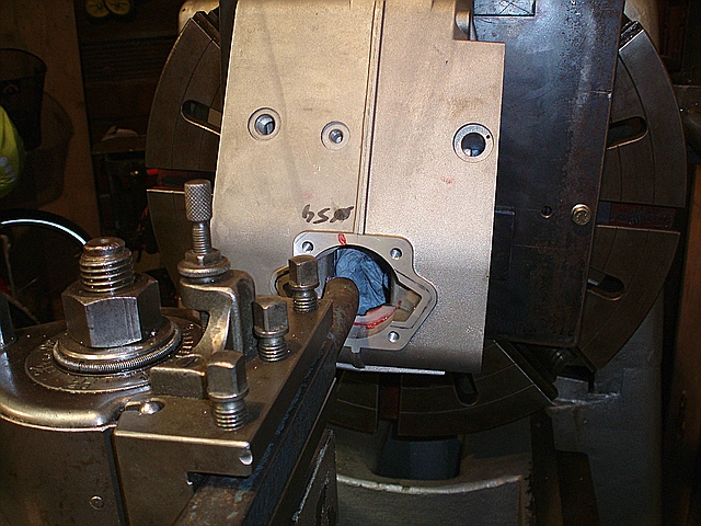 Da das Gehäuse außer Mitte gespannt werden muss, ist auch ein entsprechender Drehdurchmesser notwendig, meine Planscheibe hat einen Durchmesser von 480mm. Da war es kein Problem.