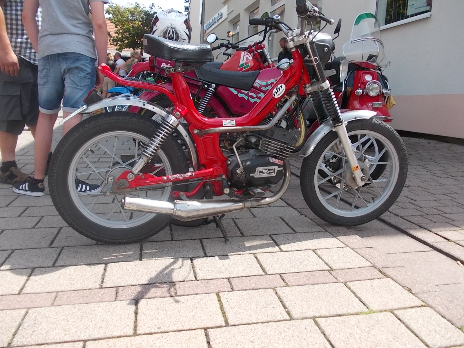 Also erst mit der Aprilia von Aris aus zum Parkplatz des Tennisplatz und Treffen 1 besucht. Da gleich den Lackaffen getroffen und meine Drehteile weitergereicht (das sind wieder ein paar Freibier mehr in Enkenbach für mich) und Dany Malanker mitgeteilt dass seine Teile beim Aris liegen (die hat Werner nämlich gleich in seinem Bus mitgenommen).