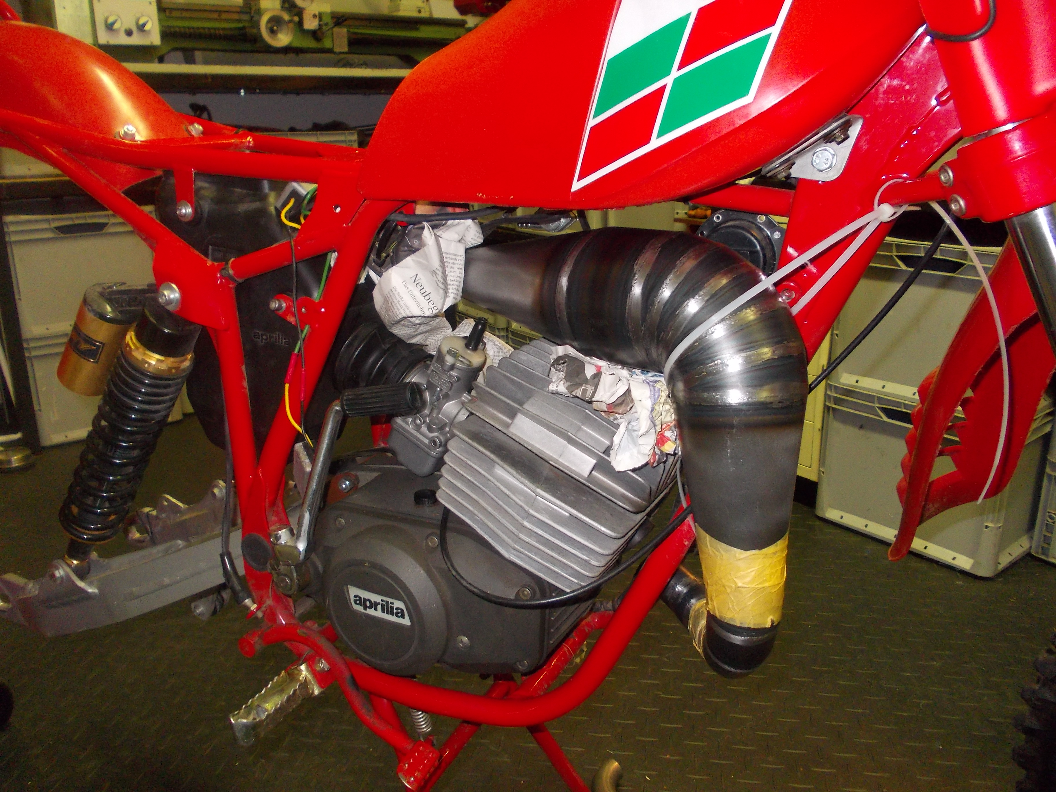 Hatte schon mal probiert einen 26er oder 28er Vergaser anzubauen, aber der Winkel von Vergaser-Ansaugstutzen war extrem steil. Jetzt hatte ich an Michel seiner RX einen gewinkelten Ansauggummi gesehen, den aber auch nicht in Novegro gefunden. Aber im Internet wurde ich fündig und zwar passt der von einem Aprilia Leonardo 125er Roller.