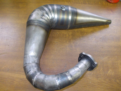 Zusätzlich hab ich mir noch ein Eisen passend gedreht, damit ich den Krümmer auf dem Auspuffstutzen mit leichter Klemmung schieben konnte. Nach zig mal dran und wieder ab, hab ich angefangen Heftpunkte zu setzten.