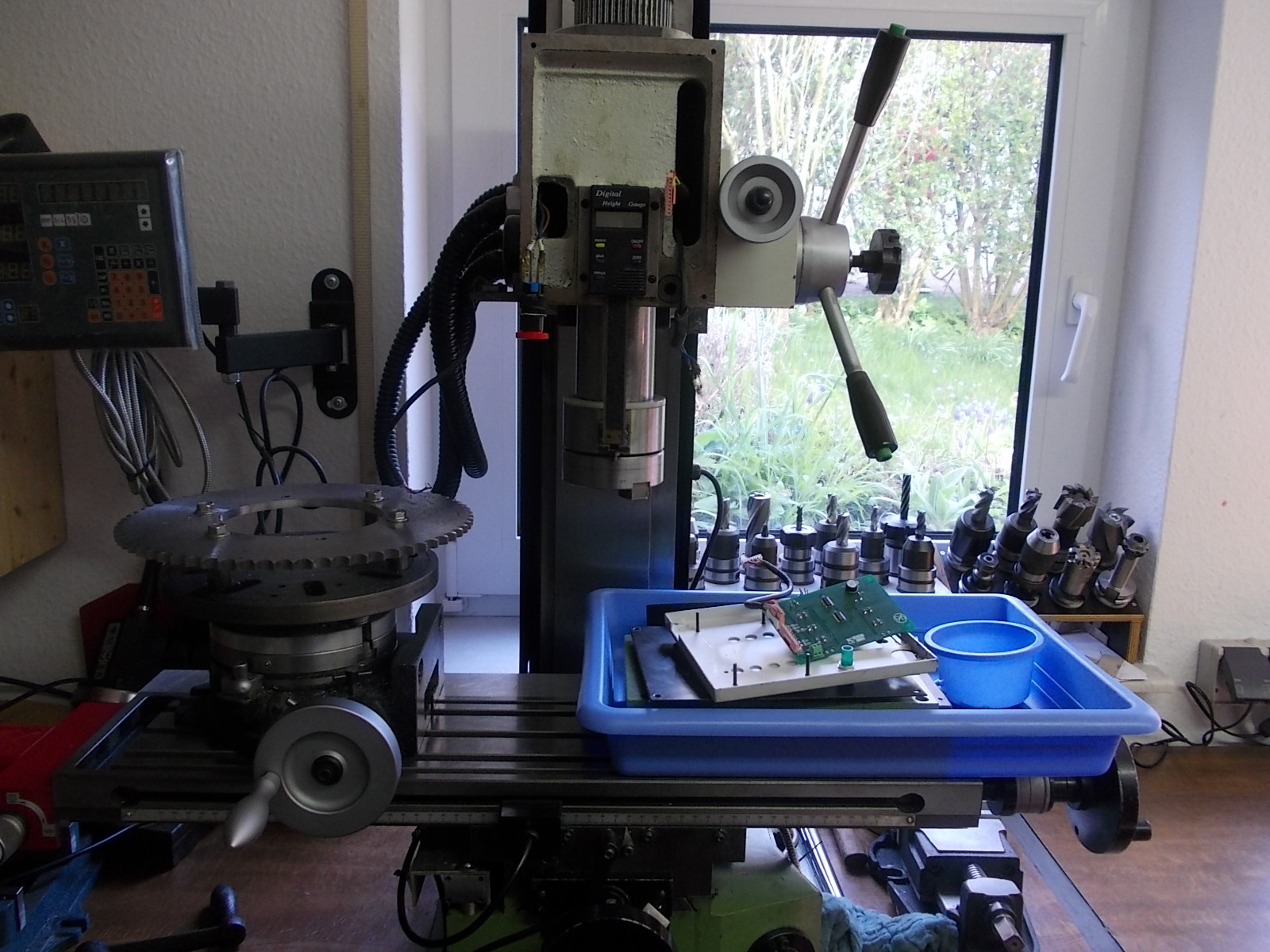 So relativ zeitaufwendiges Kurbel an Rundtisch war angesagt, er mal ein „Loch“ rein und dann sich dem Enddurchmesser nähern.