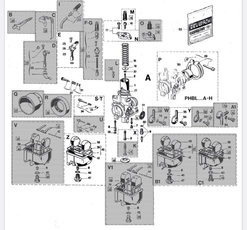 Nun habe ich wieder was dazugelernt. War mir gar nicht klar, dass es 2T- und 4T-Vergaser gibt und dummerweise habe ich einen 4T-PHBL bestellt. Von aißen sieht man das nicht und von innen muss man schon mal genauer hinschauen: Bemerkt habe ich das erst, als ich mal wieder keine vernünftige Einstellung mit dem neuen Vergaser hinbekommen habe. Nachdem alle Düsen hin und her gewechselt waren und die Nadel rauf und runter gesetzt, bin ich letztlich am Zerstäuber hängen geblieben. Den 260er hatte ich bestellt, brachte aber nichts. Aufklärung brachte das Dellorto Handbuch. Da gibt es für den 2T-Vergaser verschiedene Zerstäuber.