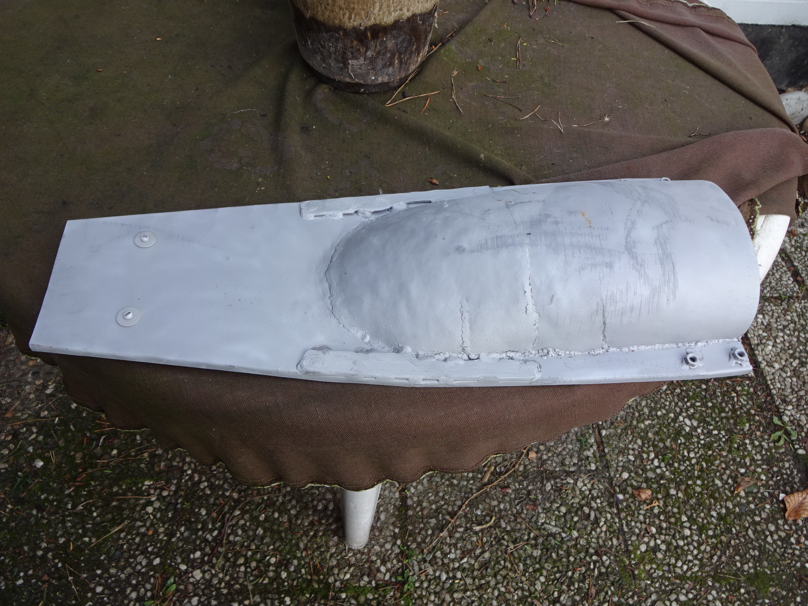 Mit der dünnen Klinge ging das recht gut die Rundung an Ende rauszuarbeiten, aber jetzt muss ich mit der Flex und Fächerscheibe nach innen weiterarbeiten.