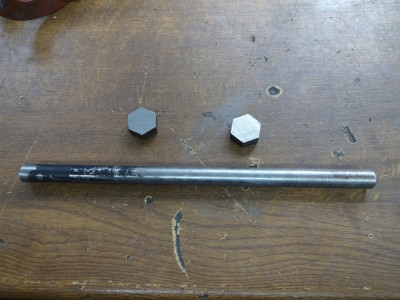 Eine Mutter fertig gemacht und auf die Achse ein Gewinde geschnitten. Nach dem Anknallen der Mutter die Achse bündig zu Mutter abgedreht und mittels Körnerschlagen gesichert.