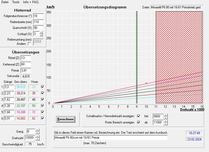Jetzt gehen wir mal von Drehzahlen 13.000 U/min aus, dann läuft eine Aspes mit Regolarita 2 dann auch ihre 89 km/h