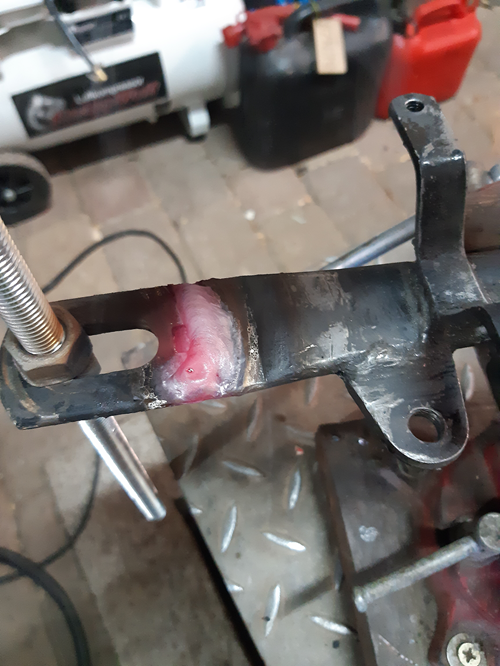 Die Radlager ohne Innenauszieher rauszubekommen war etwas Gefummel. Ganz klassisch ist zwischen den beiden Radlagern eine Hülse. Wenn die sich etwas zur Seite drücken lässt, kann man nach erwärmen der Alunabe von der Gegenseite gut klopfen und das Lager fällt raus. Weil die Hülse aber recht widerspenstig war, musst ich improvisieren. Ein altes Flacheisen, zwei Spaxschrauben, Wärme, und dann ging es doch ganz gut mit rausklopfen von der Gegenseite.