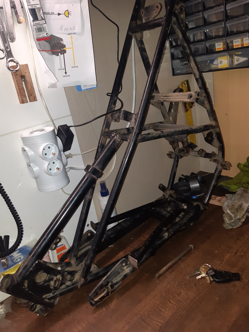 Eine zweite GT 4 hält mich gerade noch auf, da muß ich den Hauptständer noch schweißen, dann kommt die auch mal zum Pulvern: