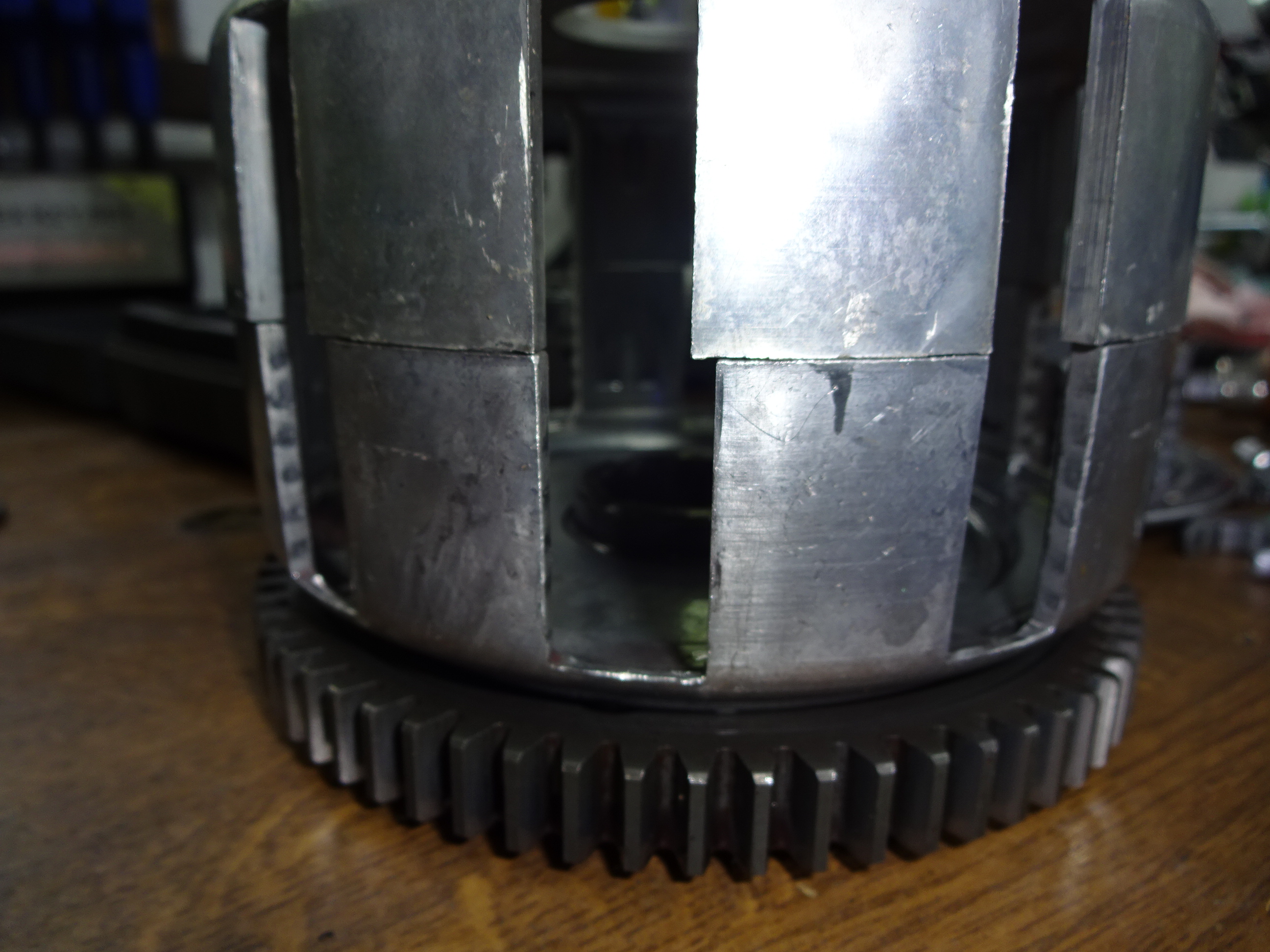 Hier sind man deutlich wieviel Spiel die Reibbeläge im Korb haben