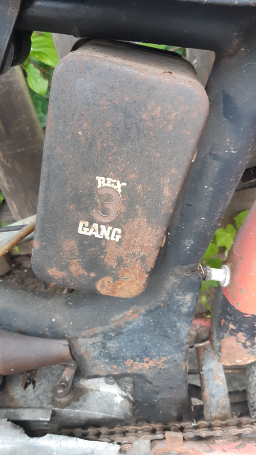 Beim Stöbern auf Kleinanzeigen hab ich dann ein Moped von 1959 gesehen, daß mir sehr gut gefallen hat. Optisch schon eindeutig aus den 50ern, aber das Dekor könnte auch aus den 70ern sein. Hab das natürlich erst mal gegoogelt, das passt alles so. Ein Rex Sportmoped mit 3 Gang Handschaltung und Pedalen, 49ccm natürlich. Der Motor dreht durch, die Gänge lassen sich schalten. Kupplung klebt. Die sitzt direkt auf der Kurbelwelle, hab ich auch noch nicht gesehen. Wurde mit original ABE beschrieben, die war auch auf den Bildern im Netz zu sehen. Da war ich etwas skeptisch. Weil die ABE nur für den Motor ist. Steht zwar auch drin, daß er in dem Fahrgestell Nummer soundso verbaut ist, passt auch alles, aber für das Moped an sich werde ich da wohl noch extra eine ABE brauchen. Egal, Zukunftsproblem