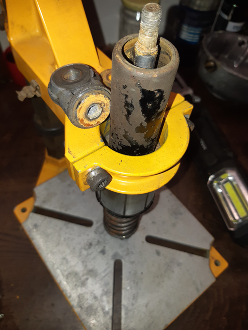 OK mal schnell die Federn raus, die Dämpfer gesäubert, geschliffen und abgeklebt. (Ja der eine Zipfel Klebeband kommt noch weg