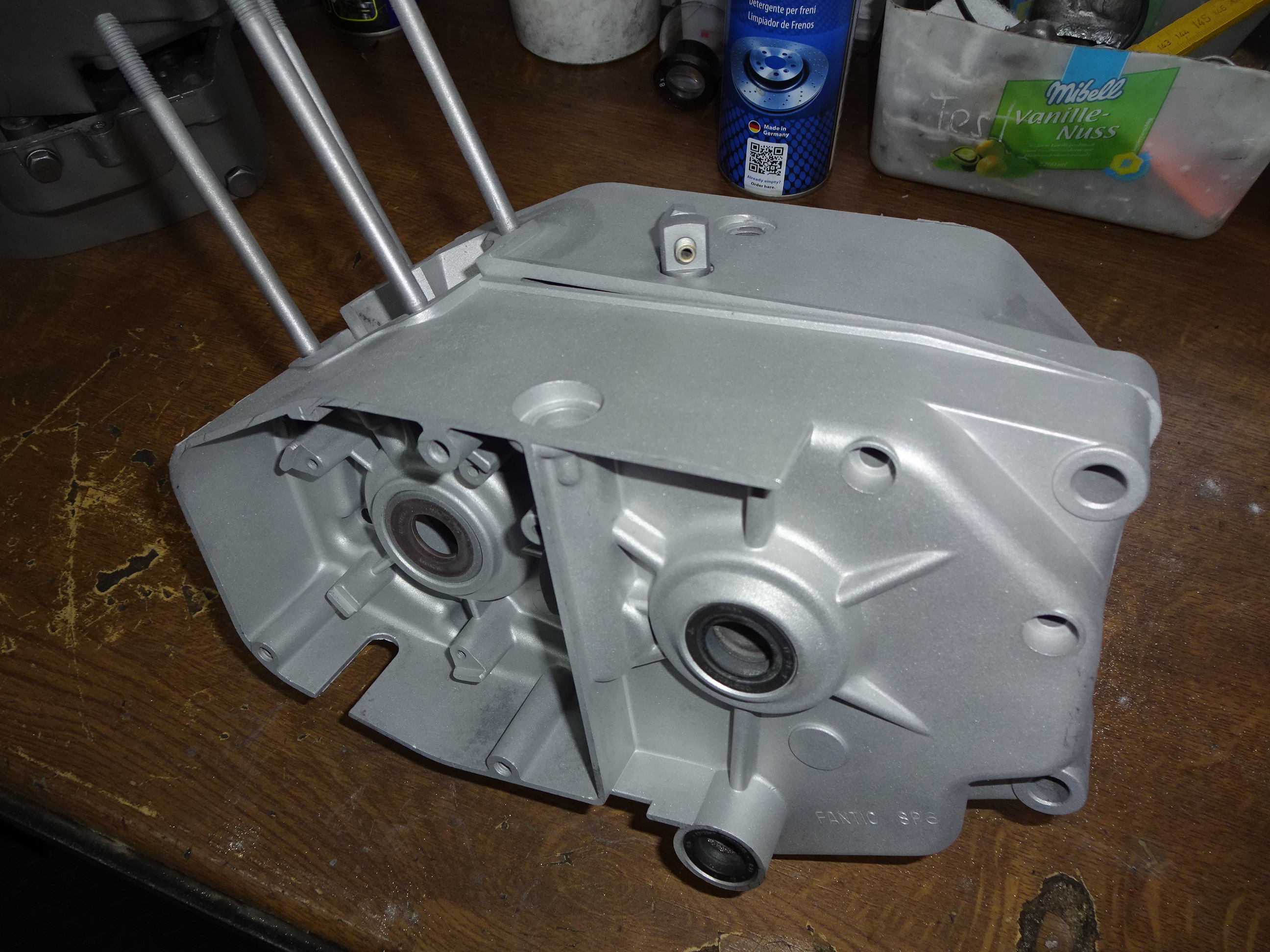Hat trotzdem noch gestunken und man sieht den Schmodder immer noch im Gehäuse. Kurbelwelle hat noch alle Lager, aber das geht jetzt schon.