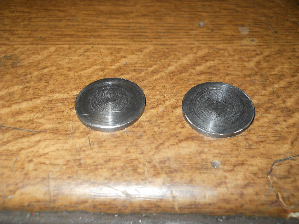 In der Restekiste lag ja auch direkt ein 22er Stück, da hab ich schnell 2 x 2mm dicke Scheiben abgestochen und kurz überfeilt.