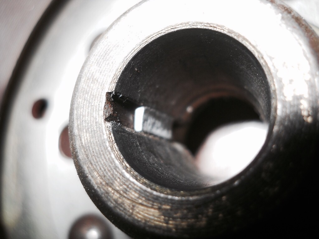 Dann die erste Überraschung, der Halbmondkeil ist regelrecht abgeschert. Gott sei Dank ohne Schäden an Kurbelwelle oder Polrad zu hinterlassen. Hab ich so noch nie gesehen.
