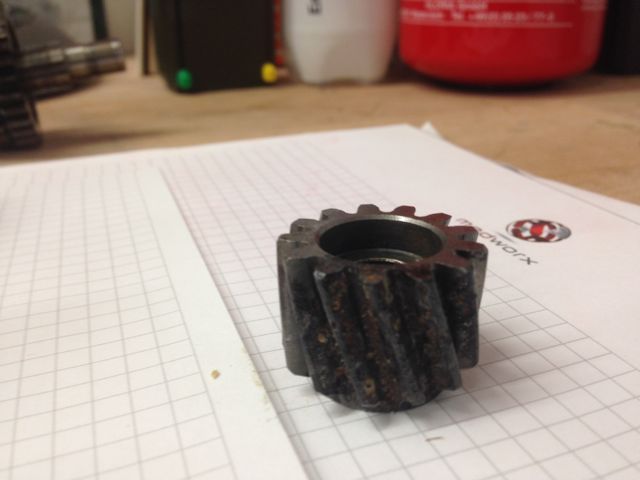 wie ist denn die Verzahnung der Vorgelegewelle (das ist die mit den festen kleinen Zahnrädern)?