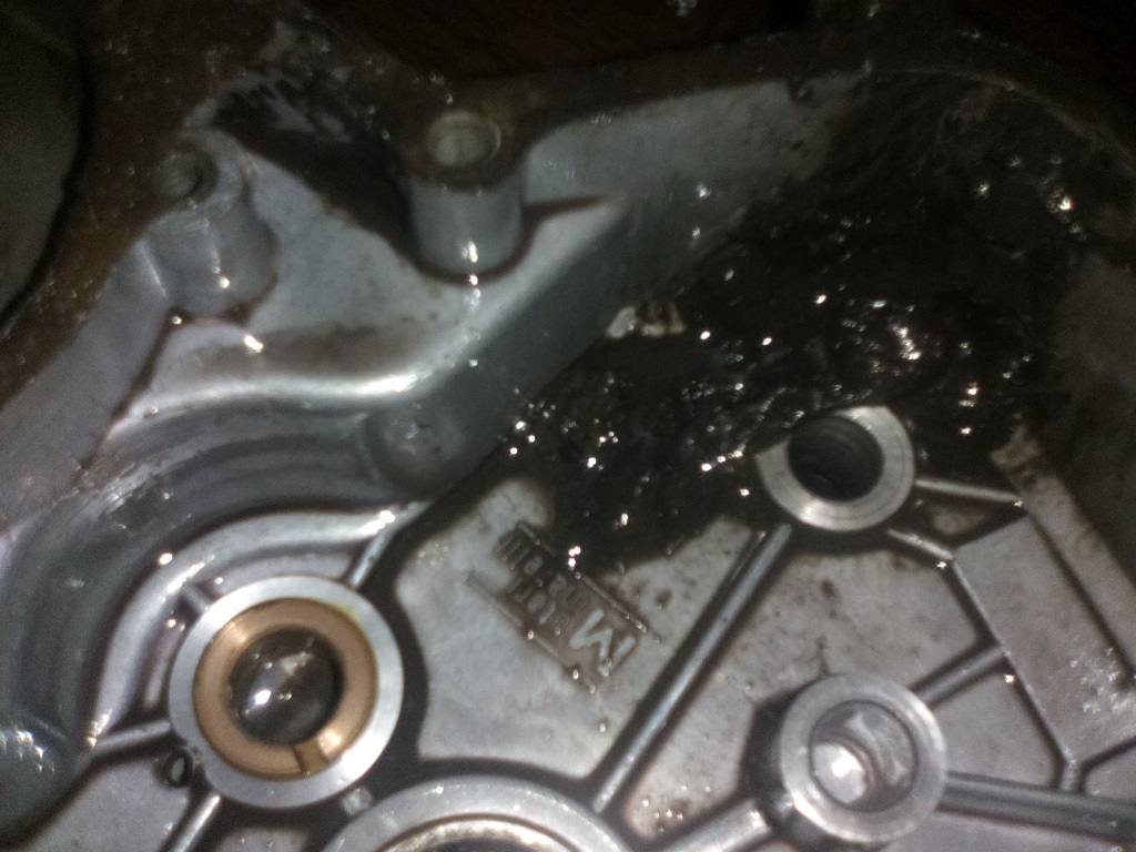 Dabei entdeckte ich, daß die Kurbelwelle rechts und das Kurbelgehäuse rechts Schleifspuren aufweisen, weil das Lager rechts ca. 5mm tief im Gehäuse versenkt ist und die KW so nach rechts wandern kann.