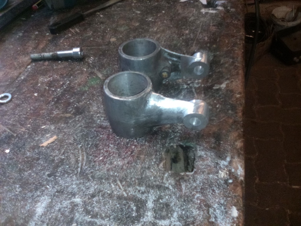 Ich hab in die Stummel jeweils beidseitig ein Loch mit 4er Gewinde gemacht, Gewindestift mit Loctite hochfest eingeklebt, volles Alu draufgedreht, auch mit Loctite. Und dann mittels Puksäge und Feile gewütet