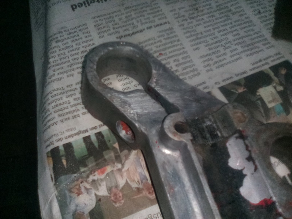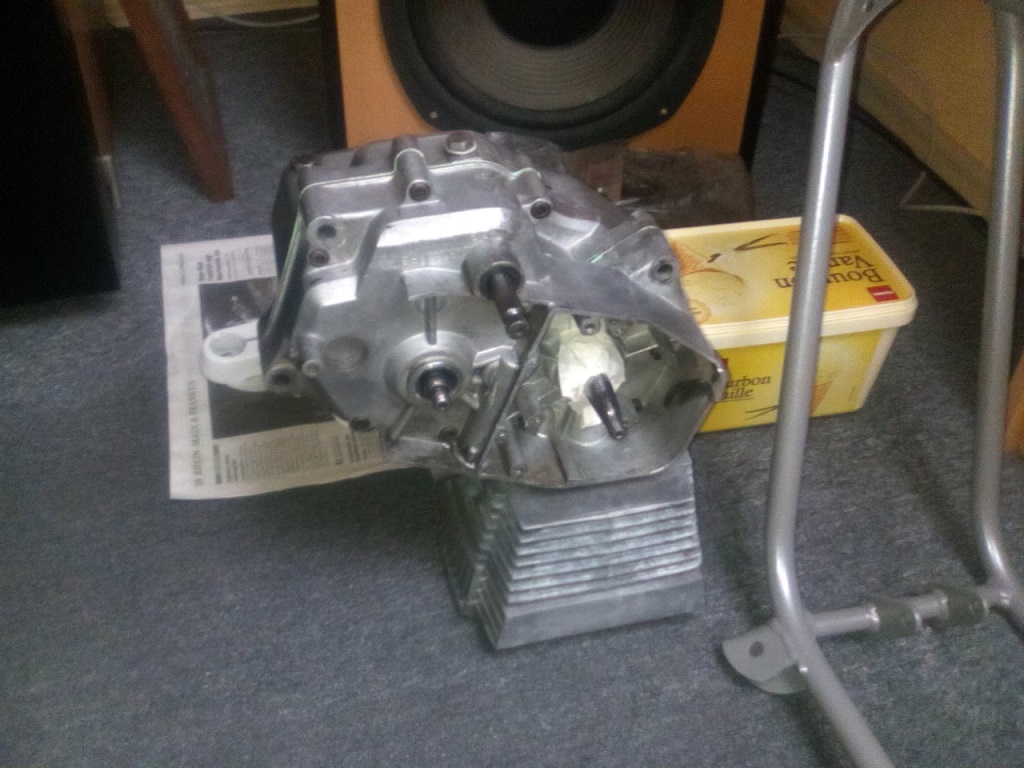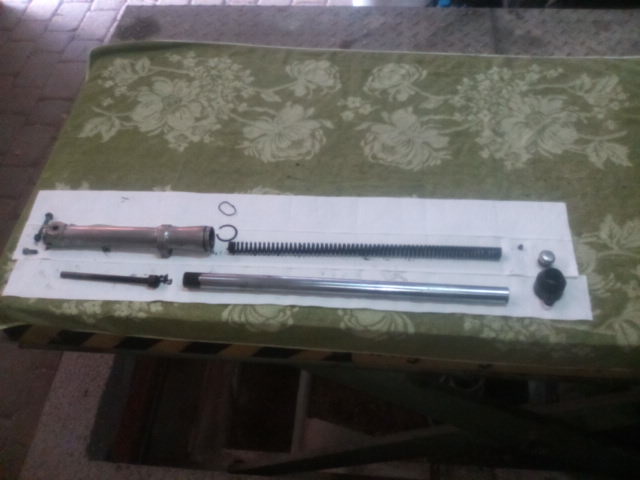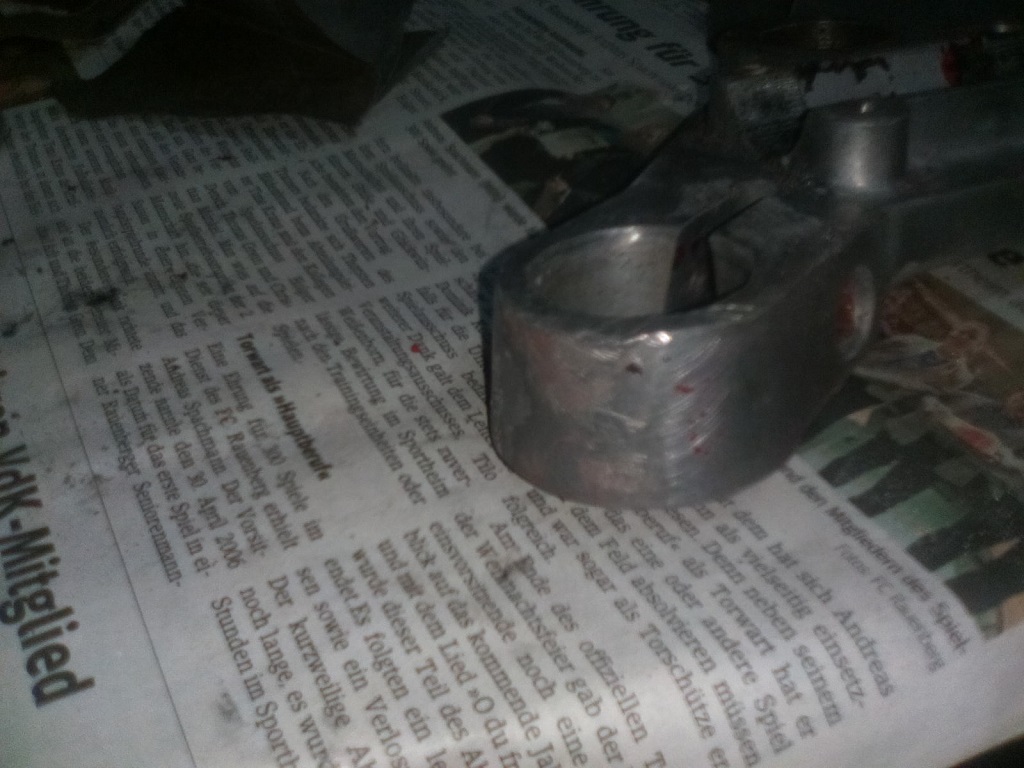Aber die Gabel ist gerichtet, neue Simmerringe drinnen. Der Chrom ist aber noch grottenschlecht, das bleibt aber erst mal so. Den Zylinder habe ich gegen einen aus Frankreich im Originalzustand (ca. 1,3 PS) getauscht und zu Zähringer eingeschickt,der hat ihn mir gehohnt und einen passenden Kolben dazu geschickt. Ist auch schon moniert.