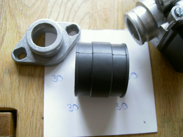 hier die version ansauger 35mm für große vergaser - aber mit reduzierung im gummi auf 30 mm auf den flansch der kleineren vergaser phbg (gibt's auch als flanschversion)