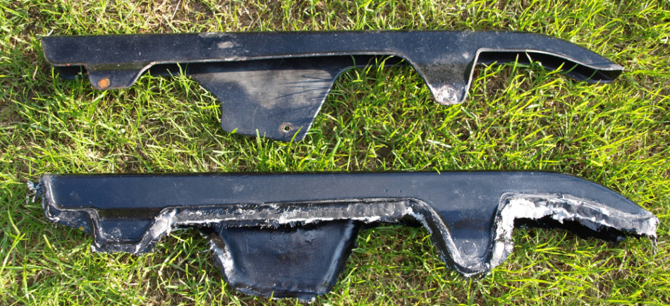 vermutlich ist der Ansaugstutzen für den 22 Vergaser nicht so einfach zu bekommen. Anzubieten hätte ich einen Ansaugstutzen für einen 26ger im Tausch gegen einen 22ger. Wird wohl aber vermutlich keiner machen. Eventuell fertige ich mir einen an. Unten noch ein Bild von einem nachgebauten Kettenschutz vor dem Lackieren. Den Kettenschutz habe ich auch dahin geändert, dass auch ggf. größere Kettenblätter montiert werden können.