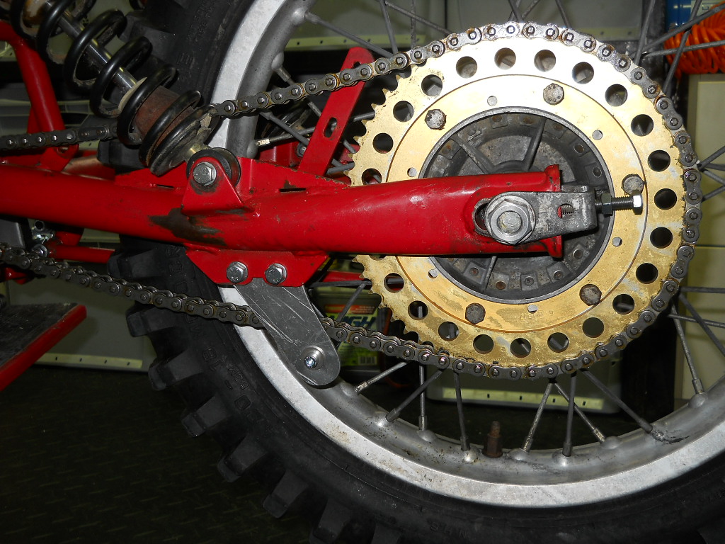 Nach dem ersten Kettenspannen wollte ich die Hinterradbremse schön einstellen, musste aber feststellen das da irgendwas wackelt bzw. schlägt.