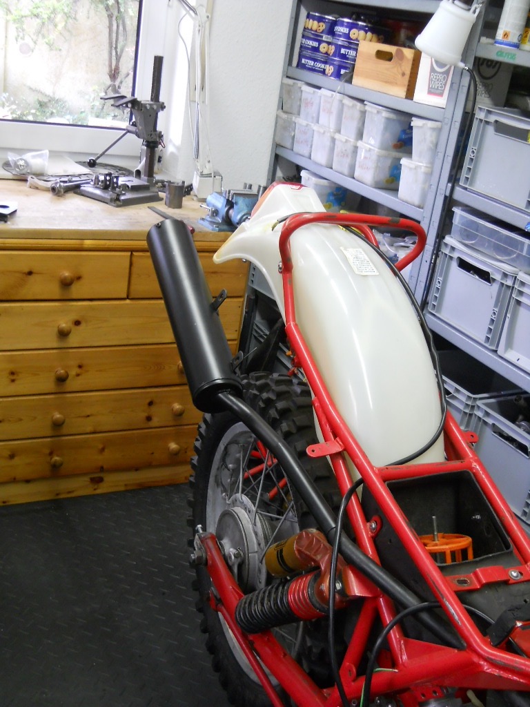 So sieht alles schon mehr nach Moped aus, wenn man mal für ein Foto Tank und Sitzbank drauf wirft.