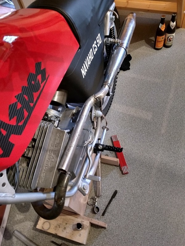 Den Endtopf hab ich noch in schön. Demnächst mal alles verschweißen, verputzen und dann mit Auspufflack schwarz behandeln. Nicht die beste Lösung, aber ok. Und optisch geht´s auch. Eventuell noch eins zwei Hitzeschutzblendchen an das lange Krümmerrohr basteln, aber dann ist gut.