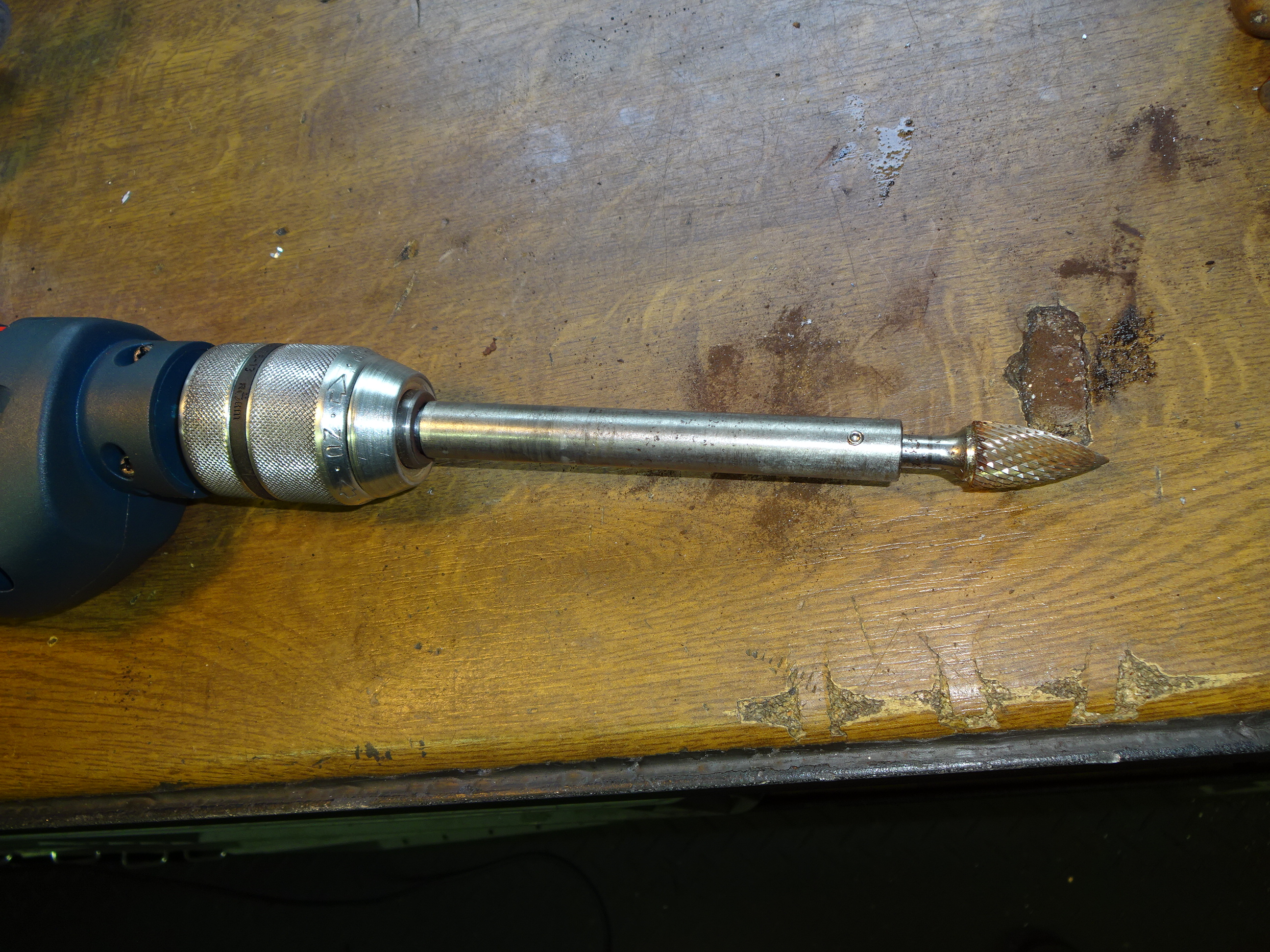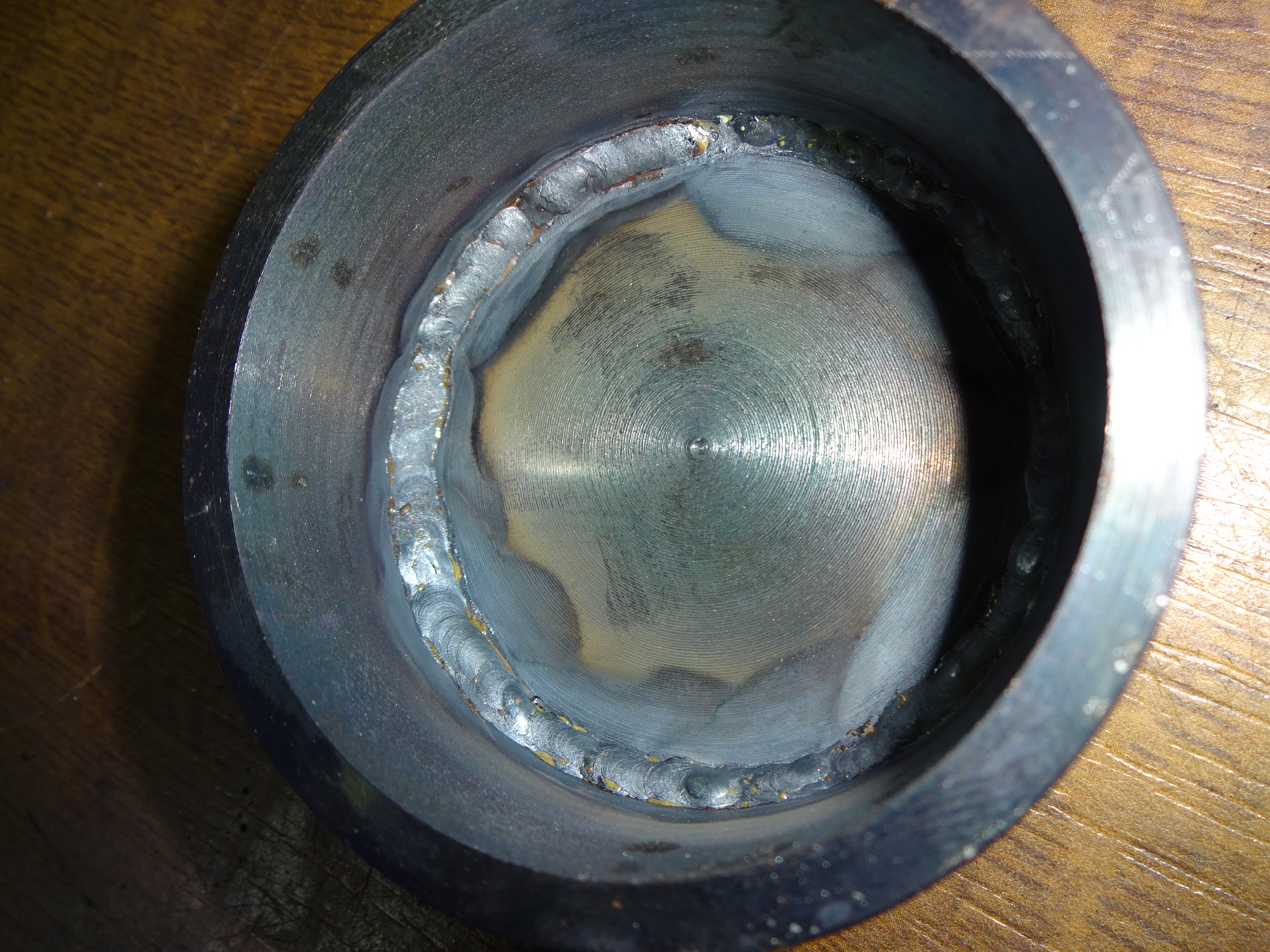 Mist! Ne Unterlage gedreht das ich die beiden Teile positionieren konnte und die Aussenseite erst verschweisst und dann zu tiefe Stellen noch aufgefüllt. Hier sieht man den sauberen Durchbrand der Schweissnaht.