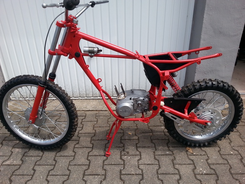 Ansaugstutzen für 22er Vergaser. Lieber hätte ich allerdings einen ASS mit Gummianschluss. Einige Fantic-ASS passen auf den Zylinder. Mal sehen, ob ich da noch was passendes finde.