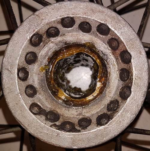 Die Radlager hab ich ebenfalls raus und neu besorgt. Warum in der Radnabe alles voll mit Fett sein muss hab ich noch nie verstanden.