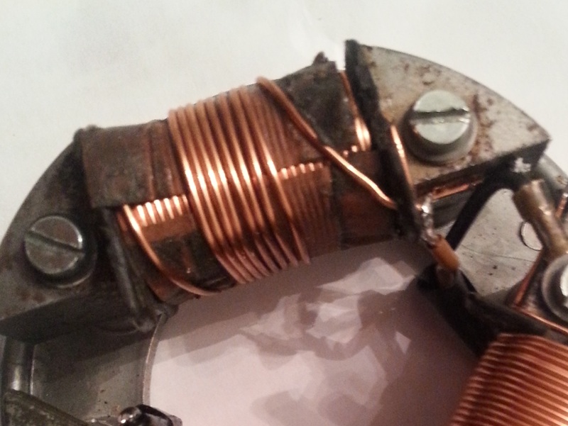 Allerdings hat sich die Spannung nicht weiter gegenüber dem ersten Versuch erhöht. Mehr als 6 Volt Standgasspannung sind nicht drin. Benutzt man die Hilfsspule also um die 6V Schnarre zu betreiben, so hat man selbst im Standgas schon einen lauten Ton. Die bei höheren Drehzahlen anliegenden 6+x Volt sollten die Hupe nicht zerstören, da ja in der Regel nur kurz gehupt wird. Das Bremslicht mit 6V zu betreiben, dürfte im Standgas noch funktionieren, aber während der fahrt liegen vermutlich zerstörerische Spannungen an. Das muss ich noch testen, wenn die Elektrik an der Beta komplett ist.