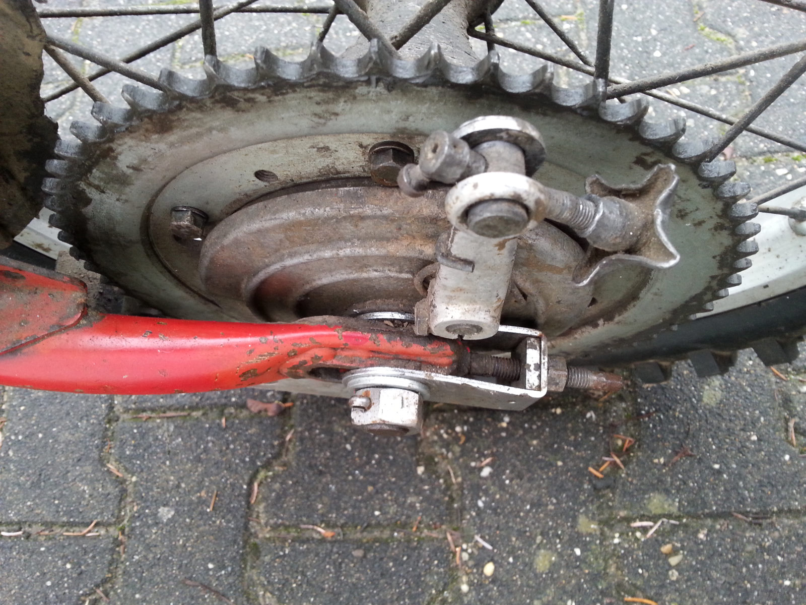 An der Schwingenachse sieht es bekanntermaßen etwas angesägt aus. warum da kein Kettenschleifer drauf ist, weiß der Henker.