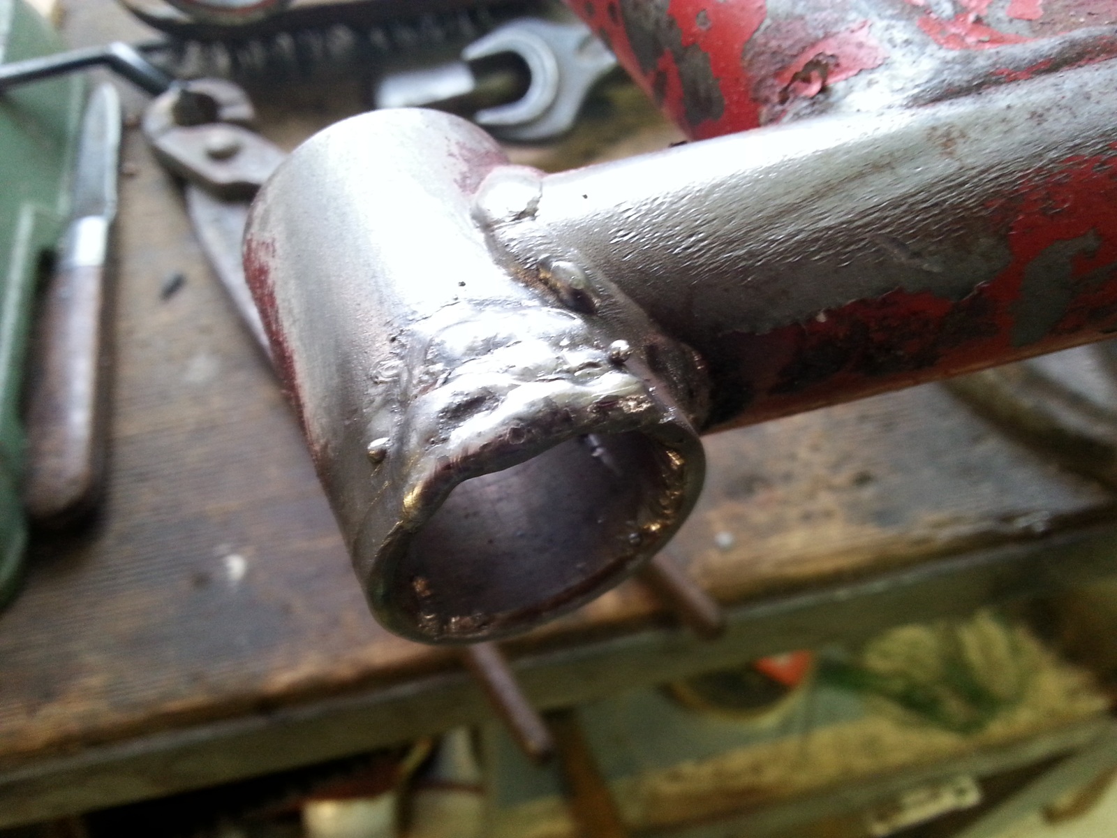 Die Sägespuren an der Schwinge habe ich aufgeschweißt.