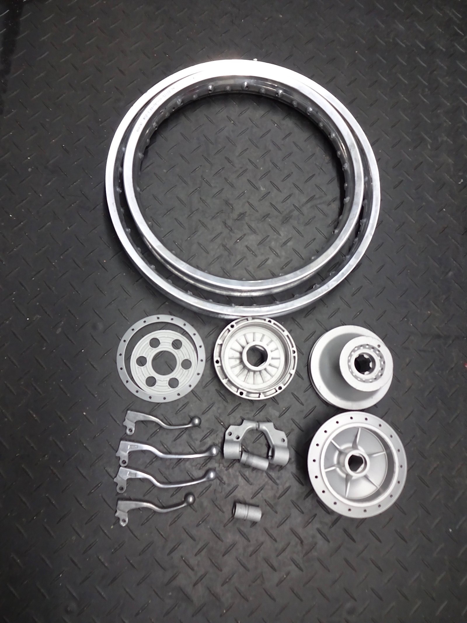Hier jetzt die Teile für die Gori. Man sieht auch die nachgefertigten Magura Kurzhebel neben den polierten Originalhebel.