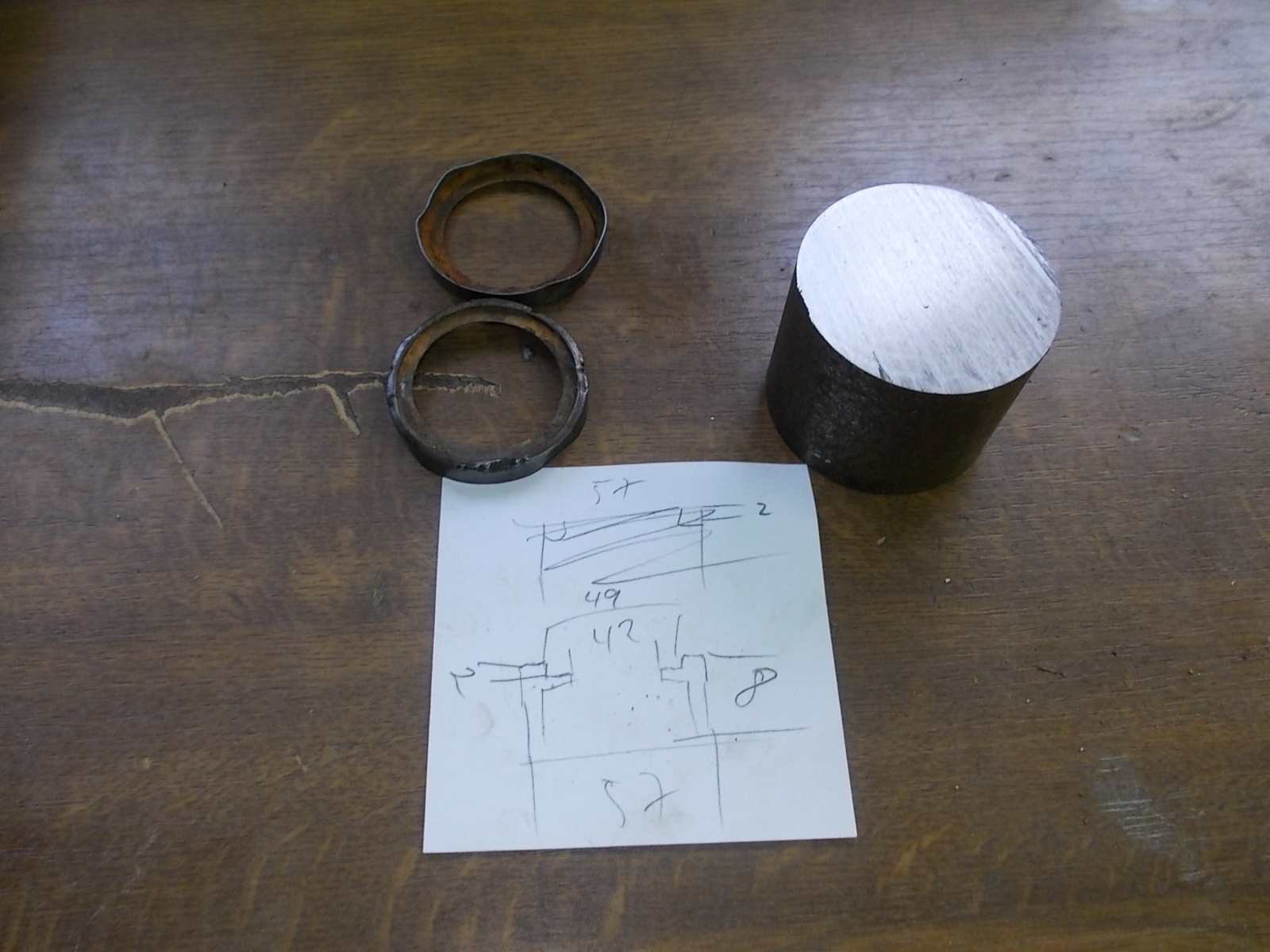 Da die oberen Buchsen/Becher für die Federn und die Halteelemente total deformiert sind, werde ich die einfach aus den Vollen schnitzen. Gleich mal 60mm Rohmaterial abgeschnitten und Feierabend gemacht.