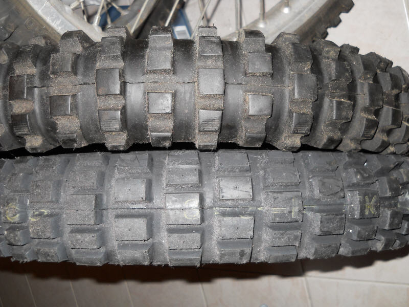 Links Metzler "MotoCross", Mitte Conti TKC80 und Rechts Metzler "Six Days" Der Conti wirkt hier nur so breit, weil er nicht in einer Felge steckt.