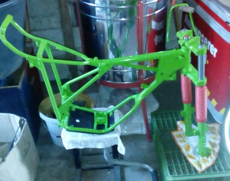 War zwar völlig zwischen Tür und Angel aber zumindest den Rahmen und den Tank von meinem Zündapp GS Projekt hab ich strahlen können.