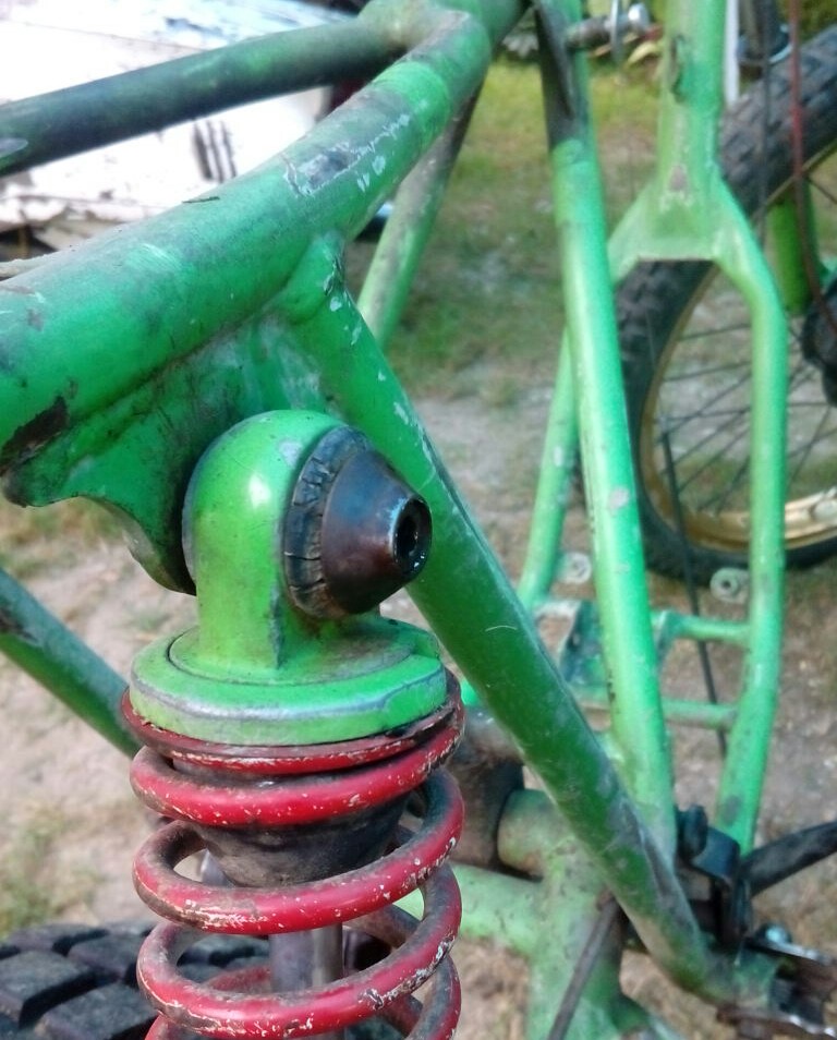 - Das eigentlich dramatischste: Eine Art kegelförmige Unterlegscheibe für die obere Stoßdämpferbefestigung. Das Originalteil habe ich zwecks Rollbarkeit allerdings noch nicht ausgebaut. Hoffentlich brauche ich da normalerweise nicht 4 Stck. davon.....