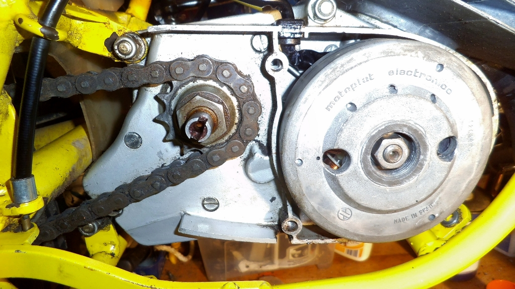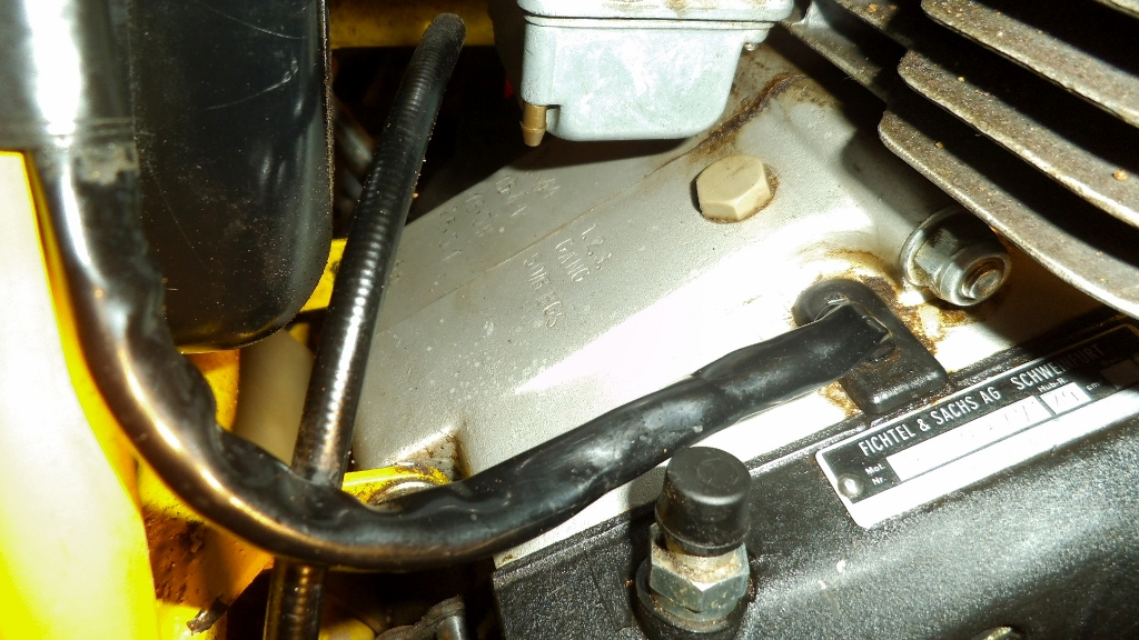 Bei der Ancillotti ist ein Minarelli Motor verbaut, hier bei der HMT ein Sachsmotor. Gab es in verschiedene Varianten .