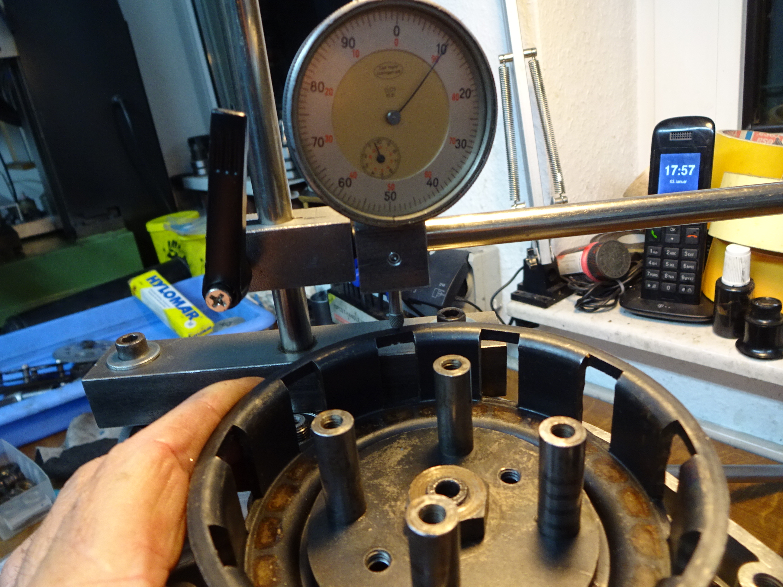 Jetzt noch den Kupplungskorb ebenfalls auf 0,1mm ausdistanziert und die Kupplung zusammen gebaut. Dabei erst mal „nur“ die 10 Taschen/Vierfeder Kupplung verbaut, aber mit verstärkten Federn. Will einfach mal sehen wie die nen 6000er Polini verkraftet, sonst wird halt aufgerüstet
