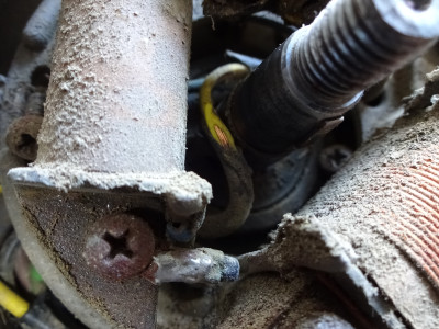 Richtig Zeit hat mich die vordere Spannhülse gekostet, war ja von Anfang an vermurkst (siehe Bild oben). Weder Wärme etc. half nicht, also musste zweimal die Buchse mit der Puksäge zersägt werden. Trotzdem ging alles noch schwer raus, hat mich mehr wie ne Viertelstunde gekostet das Ding.