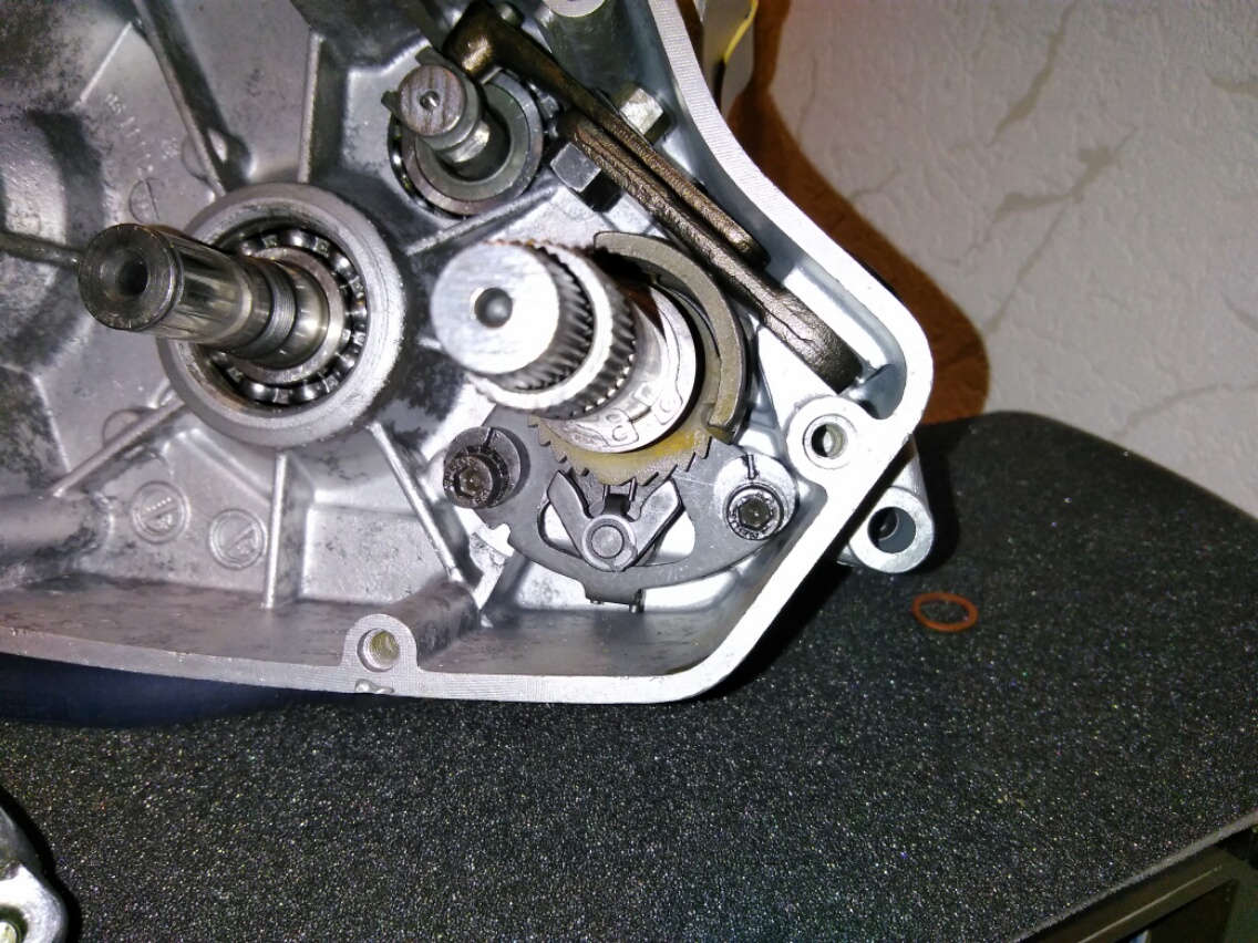Der Schalthebel ist bei deinem 125er zweigetelt und läßt sich über eine Excenterschraube verstellen. Beim 50er Motor ist er generell einteilig, aber der Schaltautomat ist der selbe. https://wawa-the-duck.lima-city.de/s125 ... 125rep.htm In der Repanleitung ist es erklärt wie du es eingestellt bekommst. |