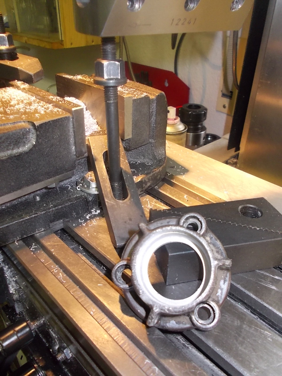 Erst mal großzügig sauber rund gedreht und nen sauberen unteren Anschlag hergestellt. Dann noch in der selben Aufspannung gleich eine neue Nut für den Dichtgummi rein.