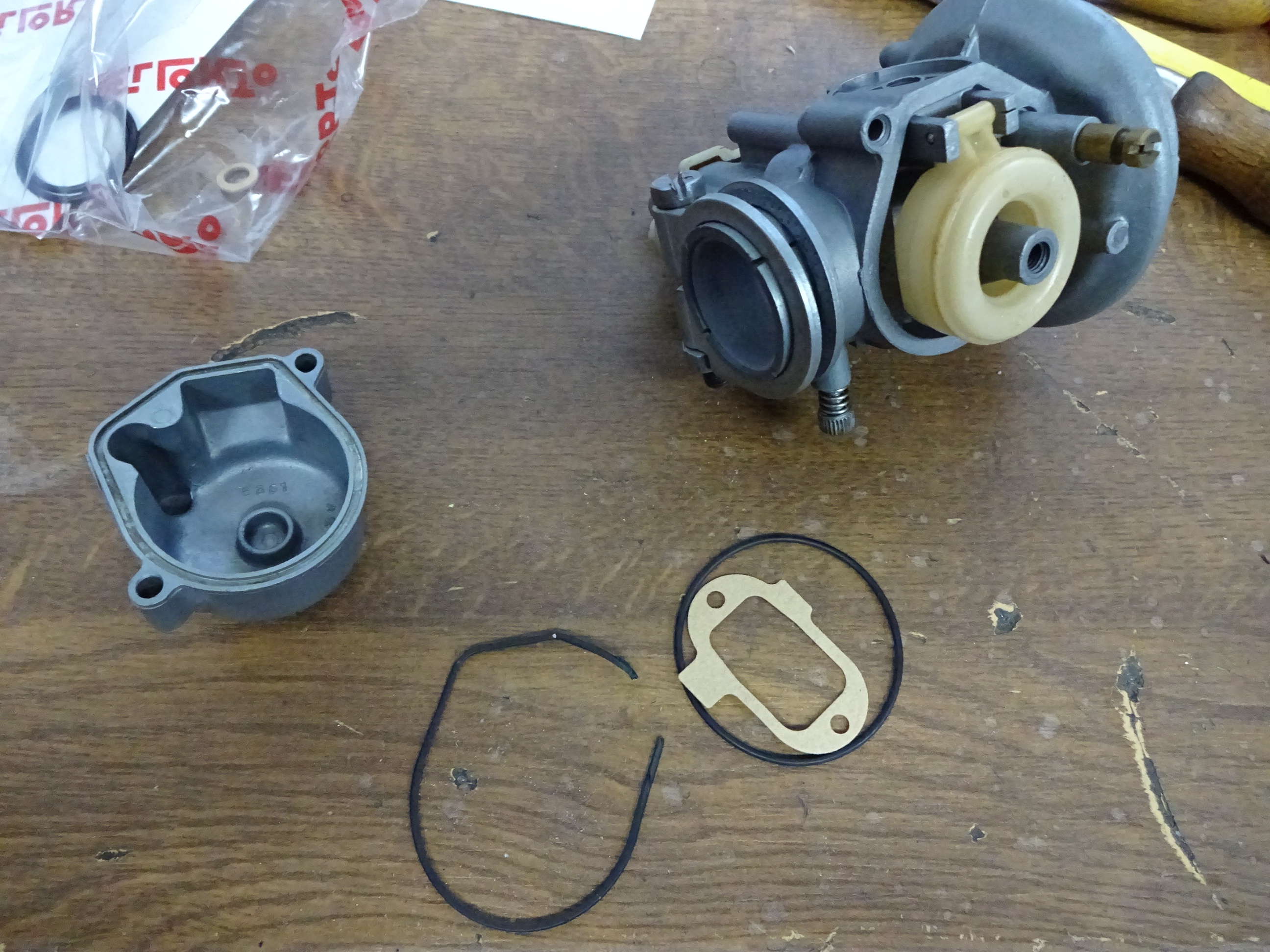 Dann den Innendurchmesser passend zum Ansaugstutzen fertig gestellt und den Vergaser mit neuen Dichtungen versorgt.